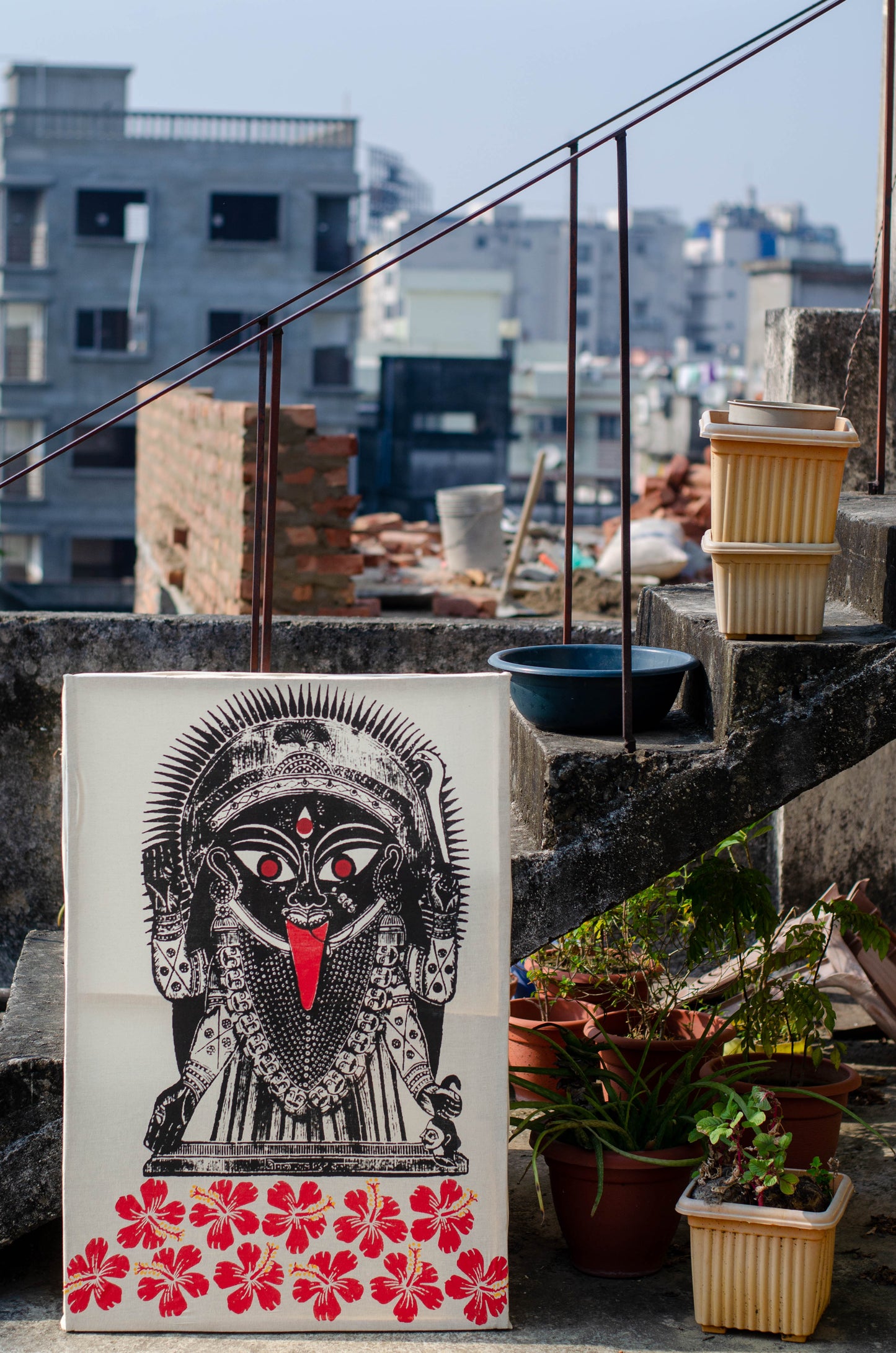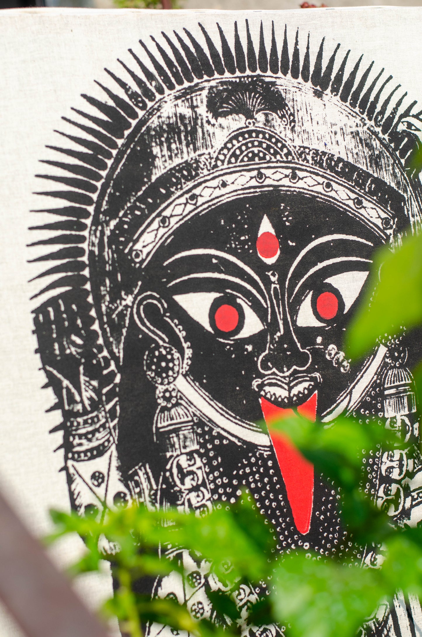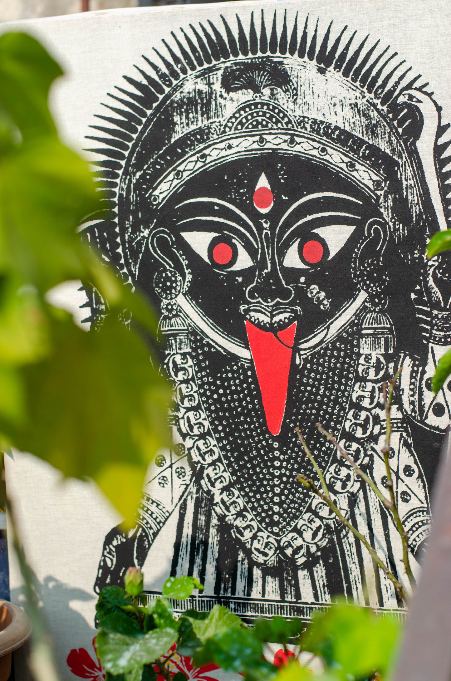 This design has been adopted from 19th Century Battala woodcut painting. It has been printed on Kora textured handloom cotton by screen printing method. It’s for your favorite wall/corner of your home